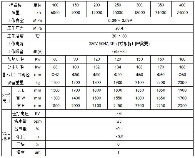智能型帶PLC全自動(dòng)式高真空濾油機(jī)參數(shù):