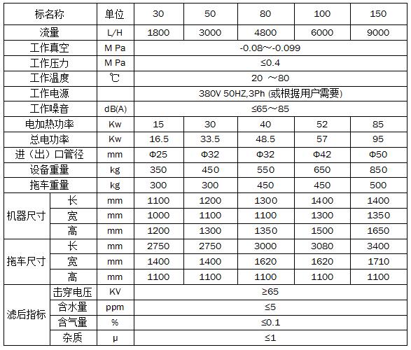 ZJA系列拖車箱式絕緣油真空凈油機參數: