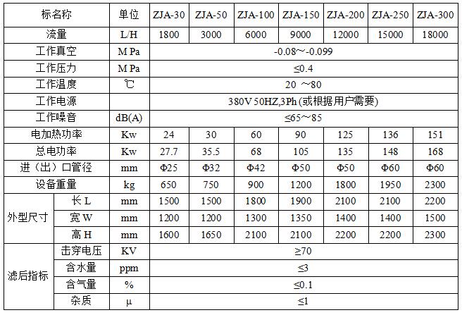 ZJA系列智能雙級絕緣油真空凈油機參數: